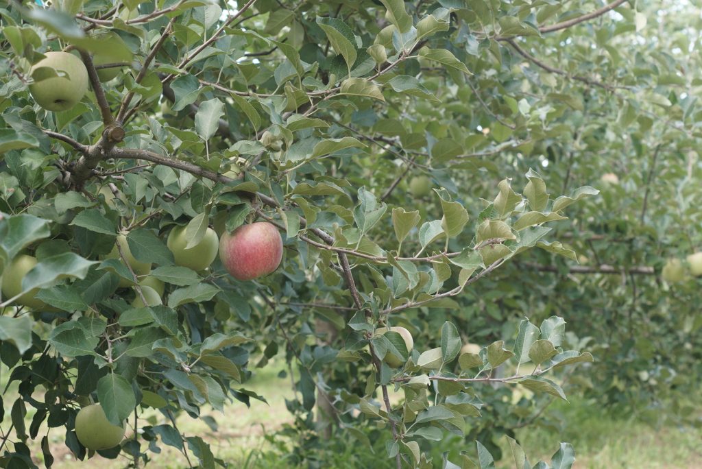 この寒暖差があることによって昼は成長、夜は寒さから身を守るという過程が繰り返され、パリッと身が引き締まった糖度が高いりんごが出来上がります。