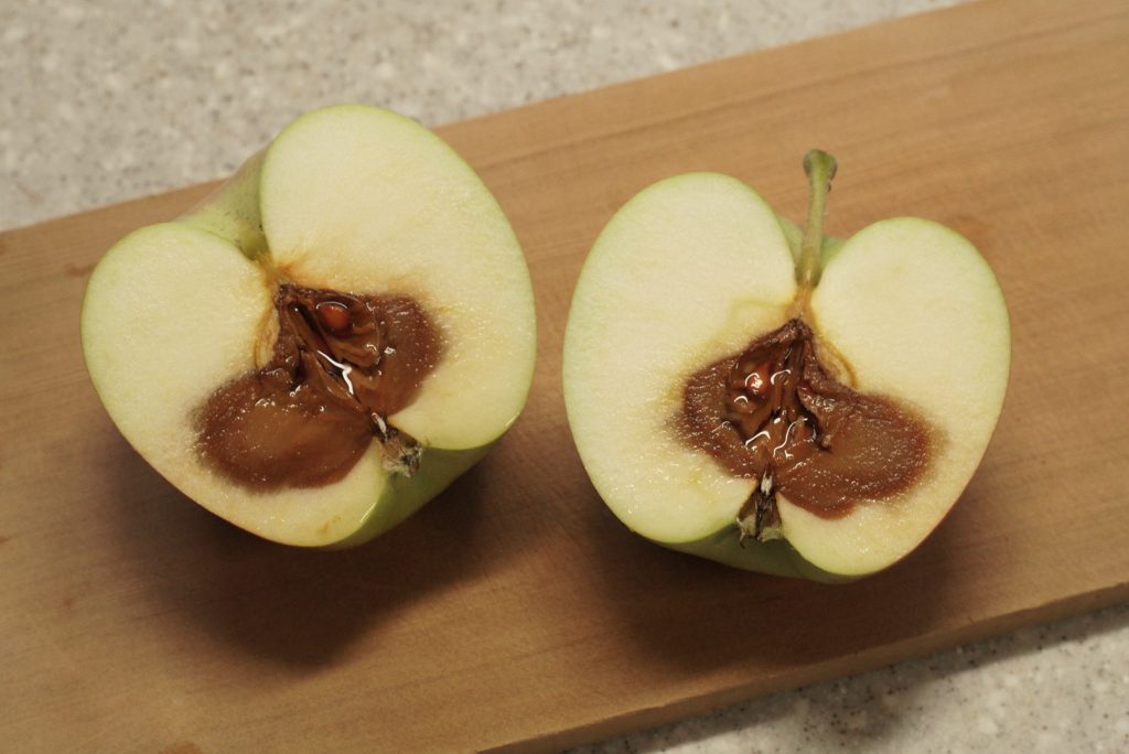 まだ未熟なりんごが緑色なのは、「葉緑素」という緑色の色素が多いから。