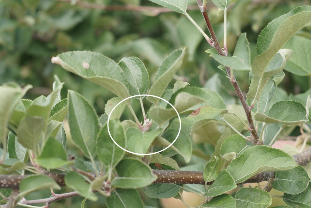 実は、もうりんごは花芽(来年実になる部分)が作られています。