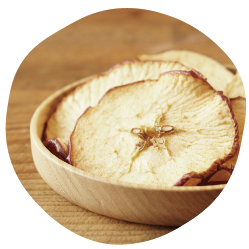 低温で長時間乾燥させ、サクサク状態にした無添加のドライフルーツ。